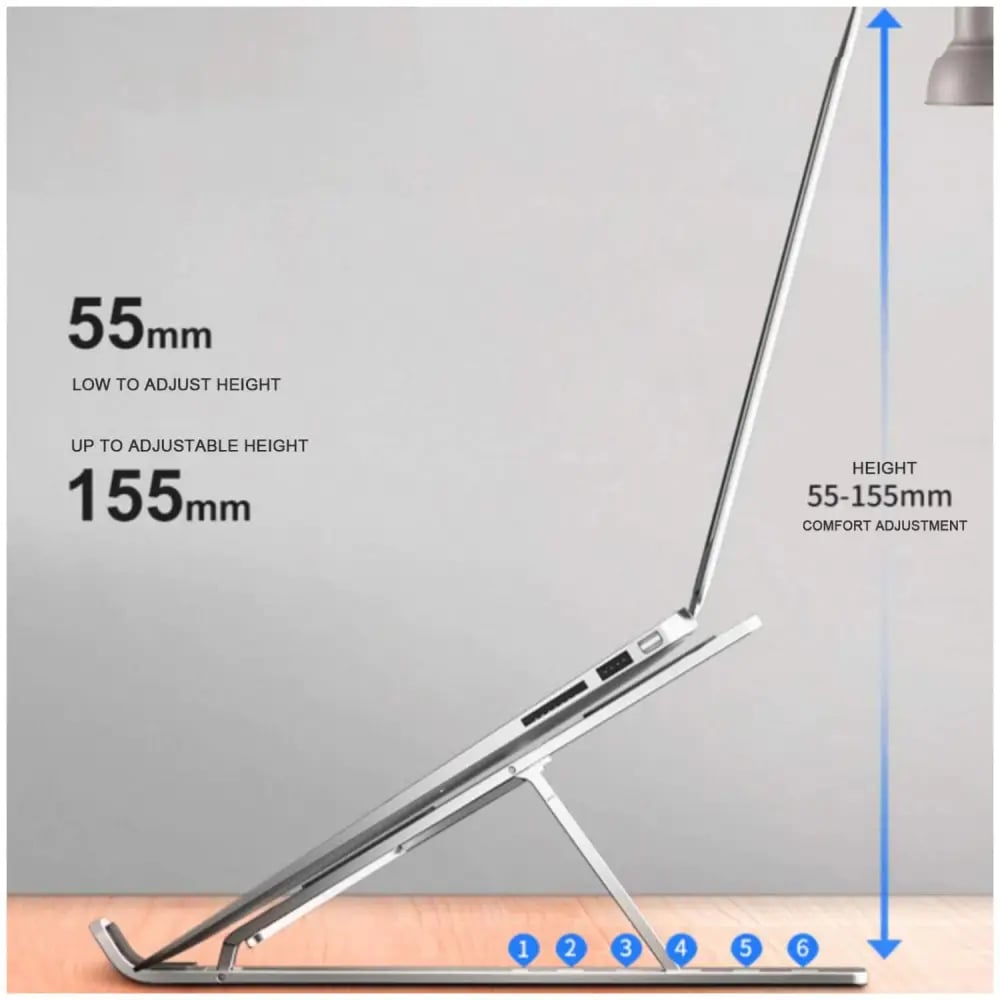تم تصميم هذا الحامل خصيصًا لتحسين تجربة العمل على الكمبيوتر المحمول أو التابلت. مع 6 زوايا قابلة للتعديل وخامة متينة من الفولاذ المقاوم للصدأ، يعد هذا الحامل خيارًا مثاليًا لتوفير الراحة والحفاظ على برودة جهازك أثناء التشغيل.