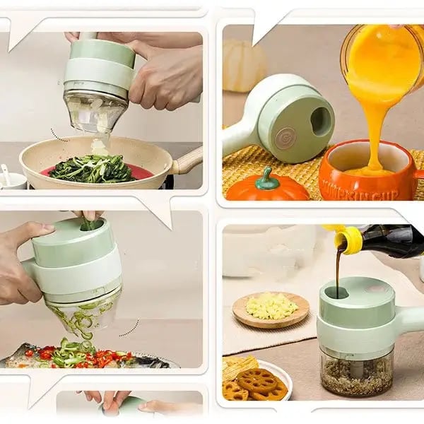 استمتع بتجربة طهي مريحة وسهلة مع قطاعة الخضار الكهربائية المحمولة 4 في 1. اجعل مهام الطهي أسرع وأكثر فعالية بفضل هذا الجهاز المتعدد الاستخدامات!