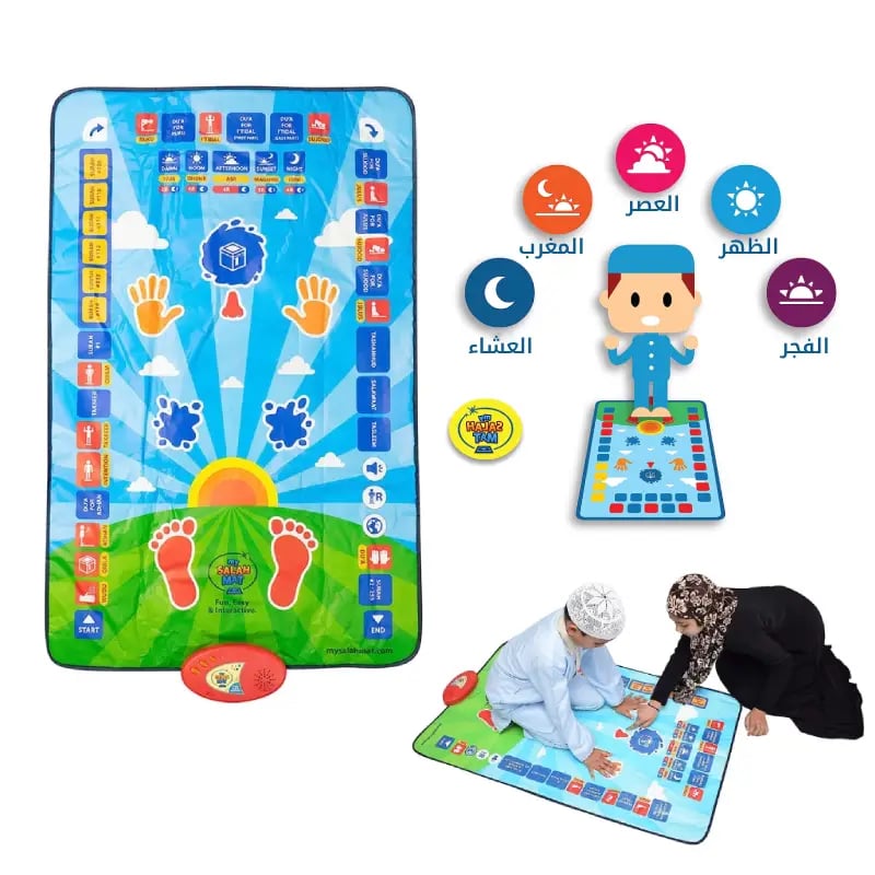- تصاميم جذابة ومرحة تحفز الأطفال على أداء الصلاة والوضوء بحب وشغف.