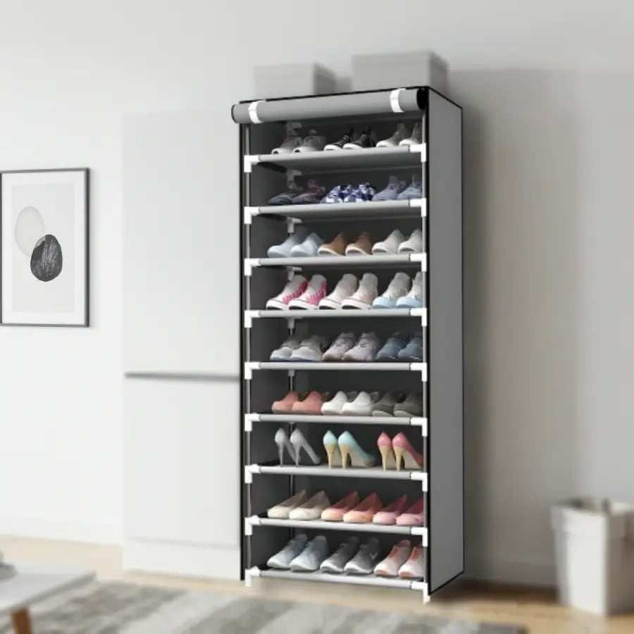 - خزانة تخزين الأحذية 9 دور تسع حتى 50 زوجًا من الأحذية، مما يجعلها مثالية للعائلات الكبيرة أو المساحات التي تحتاج إلى تنظيم شامل.