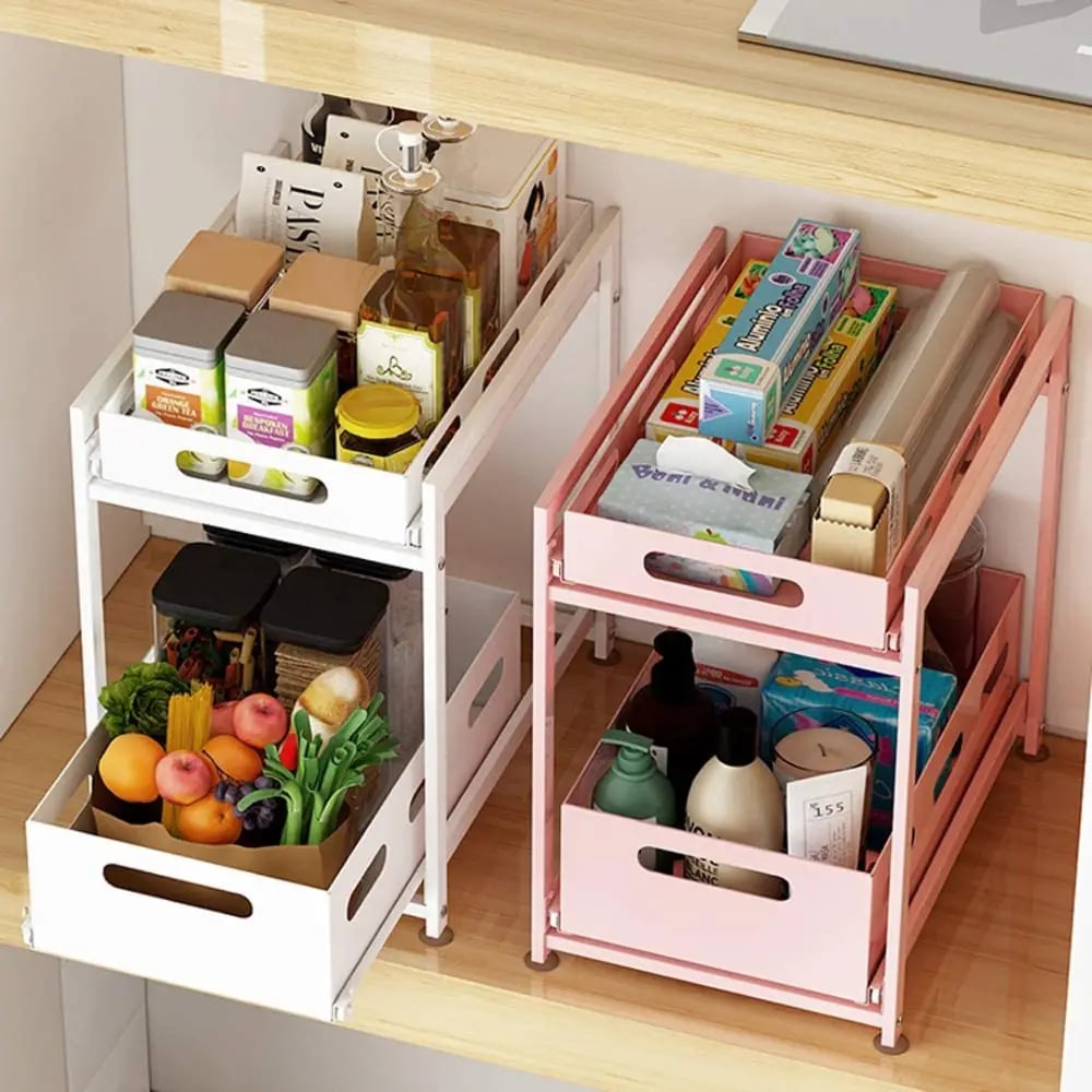 اجعلي بيتك مرتبًا ومنظمًا مع منظم التخزين برفوف قابلة للسحب!